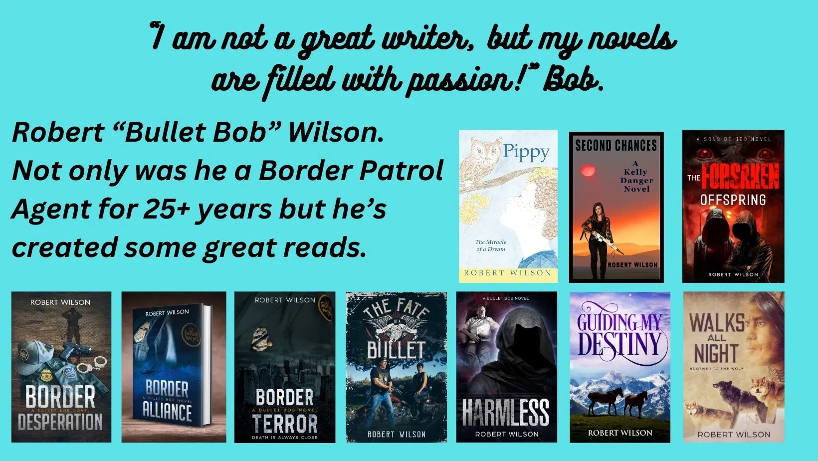 22 year old Bob Heath is a new Border Patrol Agent in Uvalde, Texas. This is Book 1 of the Bullet Bob series and follows him while simultaneously following Geronimo Vasquez, a migrant from Mexico who comes to the United States.for economic reasons. The story follows both men and their adventures and struggles to survive the equally dangerous path both have decided to follow.